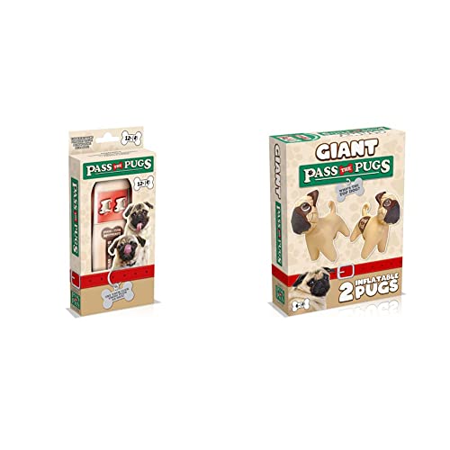 Pass the Pugs Dice Game, bounce the inflatable pugs around the garden, house, pool or beach and see how they land, first to 100 points wins, gifts and toys for Boys, Girls and adults Aged 6 plus