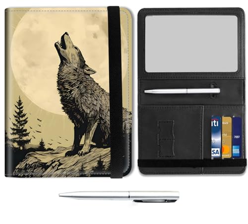 Passport and Wallet Combo,Mxfdegf with RFID Blocking,Leather Travel Documents Organizer Protector, Passport Cover, Passport Case, Passport Holder for Women and Men,, Howling Wolfs and Moon
