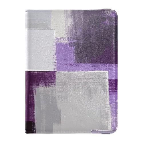 Purple White Gray Ink Art Painting Leather Passport and Vaccine Card Wallet Combo Passport Case Travel Documents Wallet Passport Cover with RFID Blocking for Men and Women Waterproof