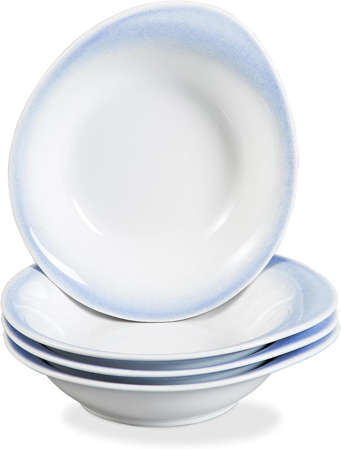 ONEMORE Soup Bowls, Pasta Bowls Set of 4, Blue Shallow Cereal Bowls 20 oz Ceram