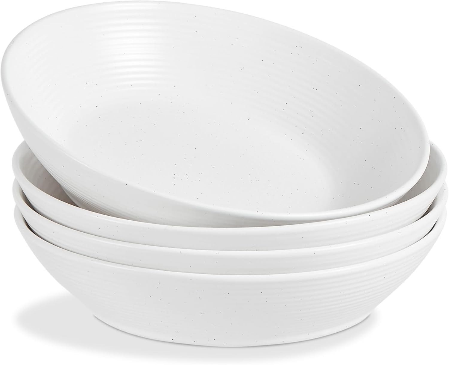 Nebula Stoneware Pasta Bowls Set of 4, 22cm/8.75in Salad/Cereal/Soup Bowl, Classic Bowl for All Pasta Dishes, Microwave and Dishwasher Safe, Serving Bowls Set of 4, White with Speckled