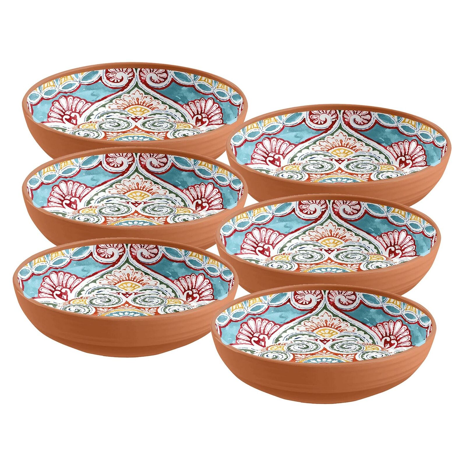 Purely Home Rio Corte 20cm Melamine Cereal/Pasta/Pudding Bowls, Set of 6