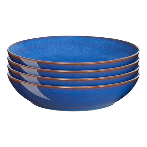 Denby - Imperial Blue Pasta Bowls Set of 4 - Dishwasher Microwave Safe Crockery 1050ml 22cm - Blue Ceramic Stoneware Tableware - Chip & Crack Resistant