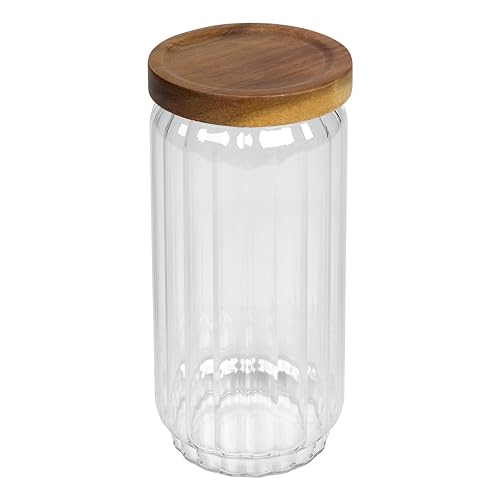Tala Ribbed Glass Storage Jar with Acacia Lid, Stylish Airtight Kitchen Jars for Dry Ingredients, Tea, Coffee, Sugar, Pasta & More, Clear Glass Canisters for Modern Kitchens, 990ml