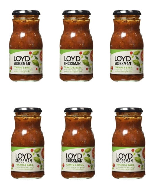 Loyd Grossman Tomato and Basil Pasta Cooking Sauce Jars Pack of 6 X 350g