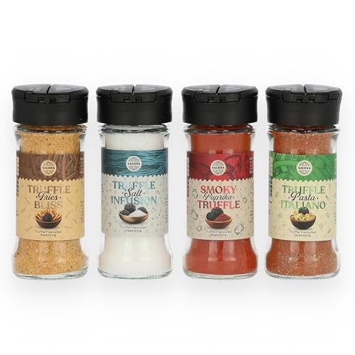 Gourmet Truffle Spice Set – Truffle Salt, Pasta, Paprika & Fries Seasonings – Premium Flavour Blends for Cooking & Finishing – 4 Glass Jars