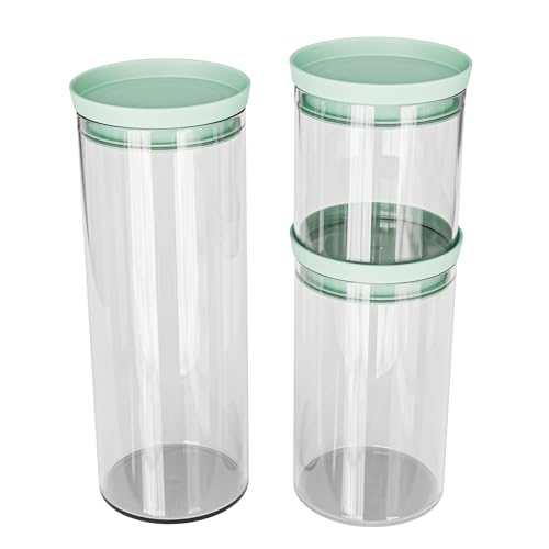 Amig - Set of 3 round airtight glass storage jars with green lids - Capacities: 600 ml, 1300 ml and 1900 ml - 3-piece glass jars for food storage - Ideal for spices and pasta