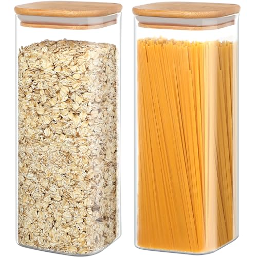 YUEYEE 2200 ml Storage Jars with Lids, Glass Container with Bamboo Lids, Transparent Storage Jars with Lid for Oats, Cereal, Pasta, Rice, Nuts, Flour, Storage, Set of 2, 28 cm High Spaghetti Storage