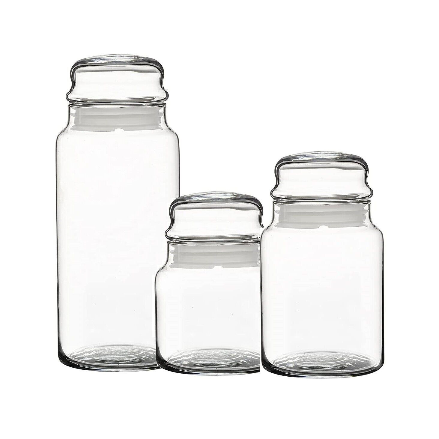Glass Storage Jars 3pcs Airtight Containers Pasta Rice Tea Coffee Sugar Kitchen