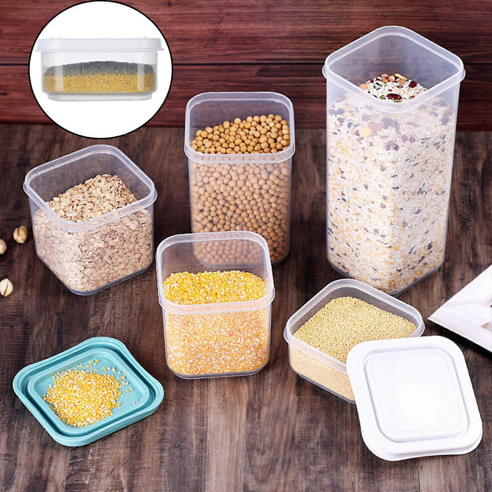 (A, One size) Household Food Storage Box Set with Lids Square Vacuum Lid Airtight Jars Noodle Cereals Flour Pasta Storage Jars Home Kitchen Sealable O