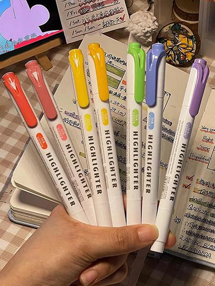 6 Pcs/Set Double Tip Highlighter Pens Kawaii Manga Markers Midliner Pastel Gel Set Stationery Journal Supplies Gel Pens
