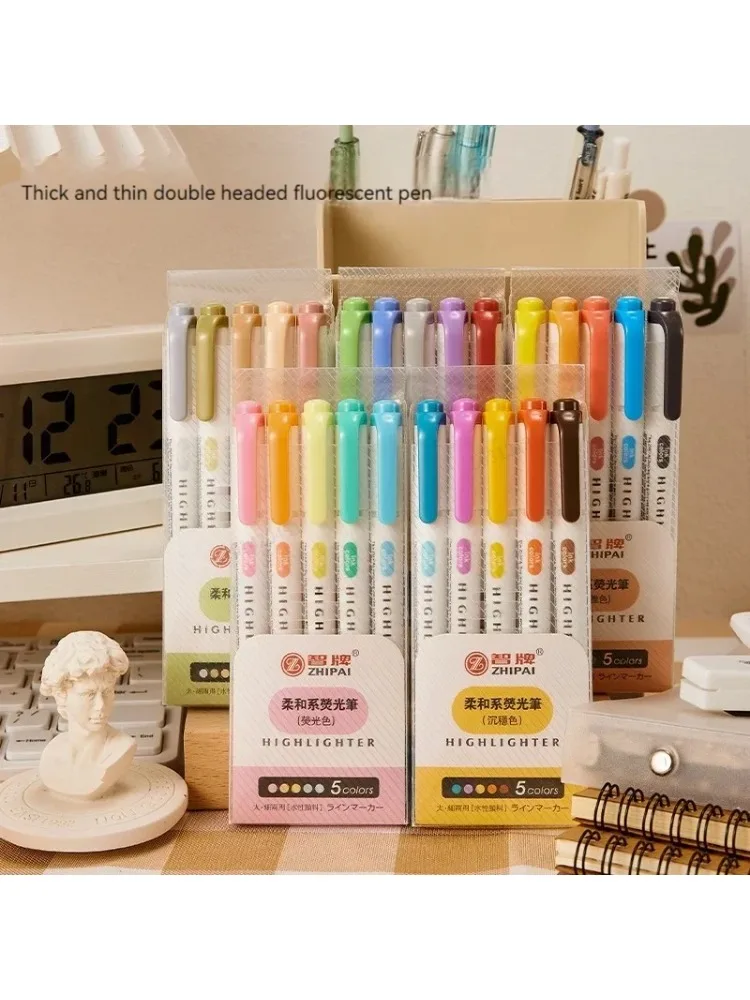 5 Colors/box Double Headed Highlighter Pen Set Fluorescent Drawing Markers Highlighters Pens Art Japanese Cute Pastel Stationery