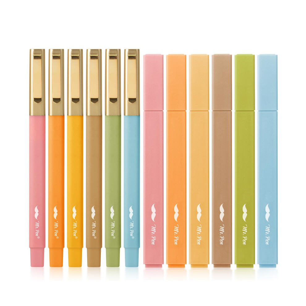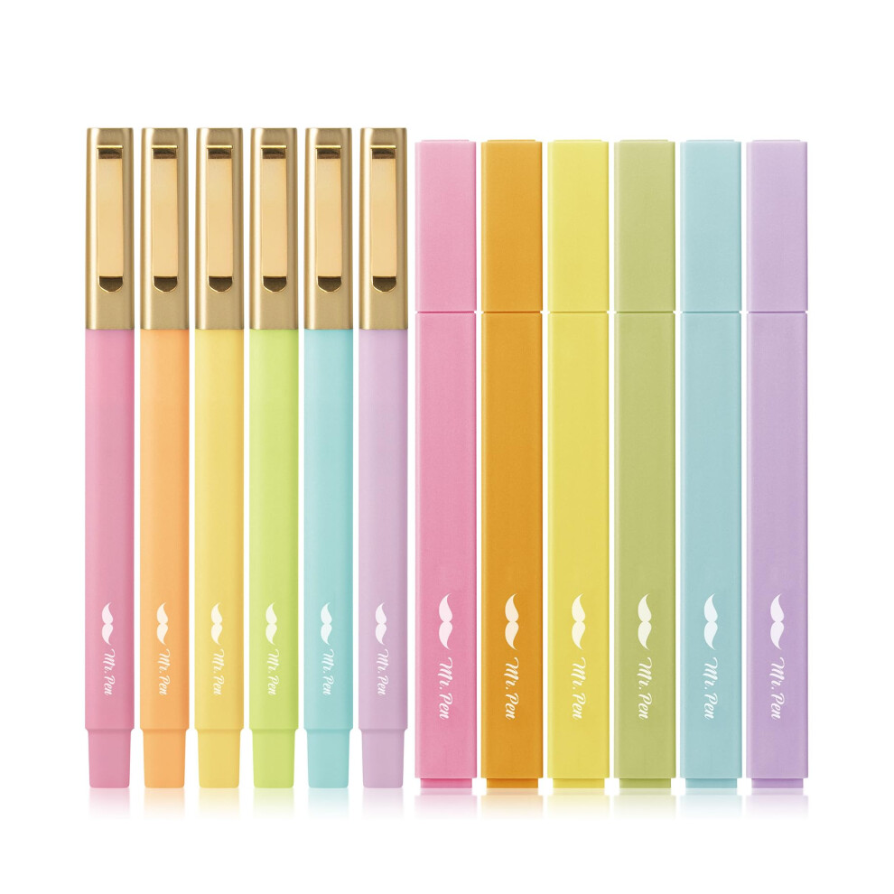 Mr. Pen- Aesthetic Highlighters and Pens No Bleed 12 Pack Pastel Color Bible Highlighters No Bleed Black Ink Bible Pens Highlighter Pens No Bleed