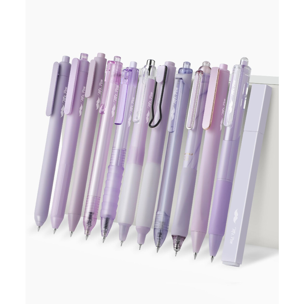Mr. Pen- Gel Pen Set 12 Pack Pastel Purple Barrels 1 x Aesthetic Highlighter 0.5mm Purple Pens with Black Ink