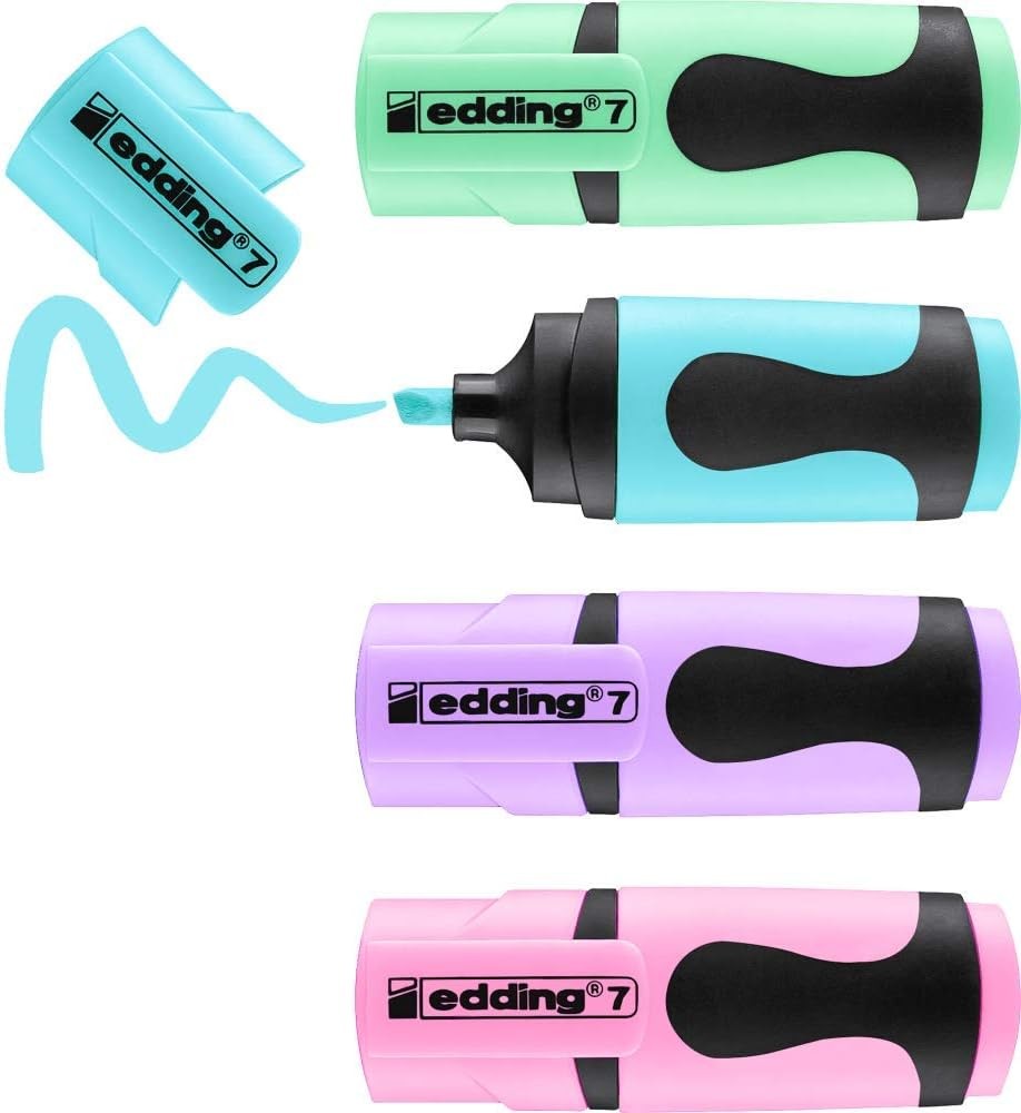 edding 7 mini highlighter set - pastel colours - 4 highlighter pens - chisel ni