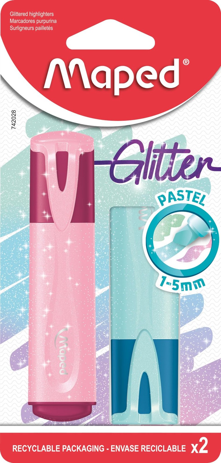 Maped Pastel Glitter Highlighter Pens (Pack of 2 - Assorted Colours) x2 Glitter