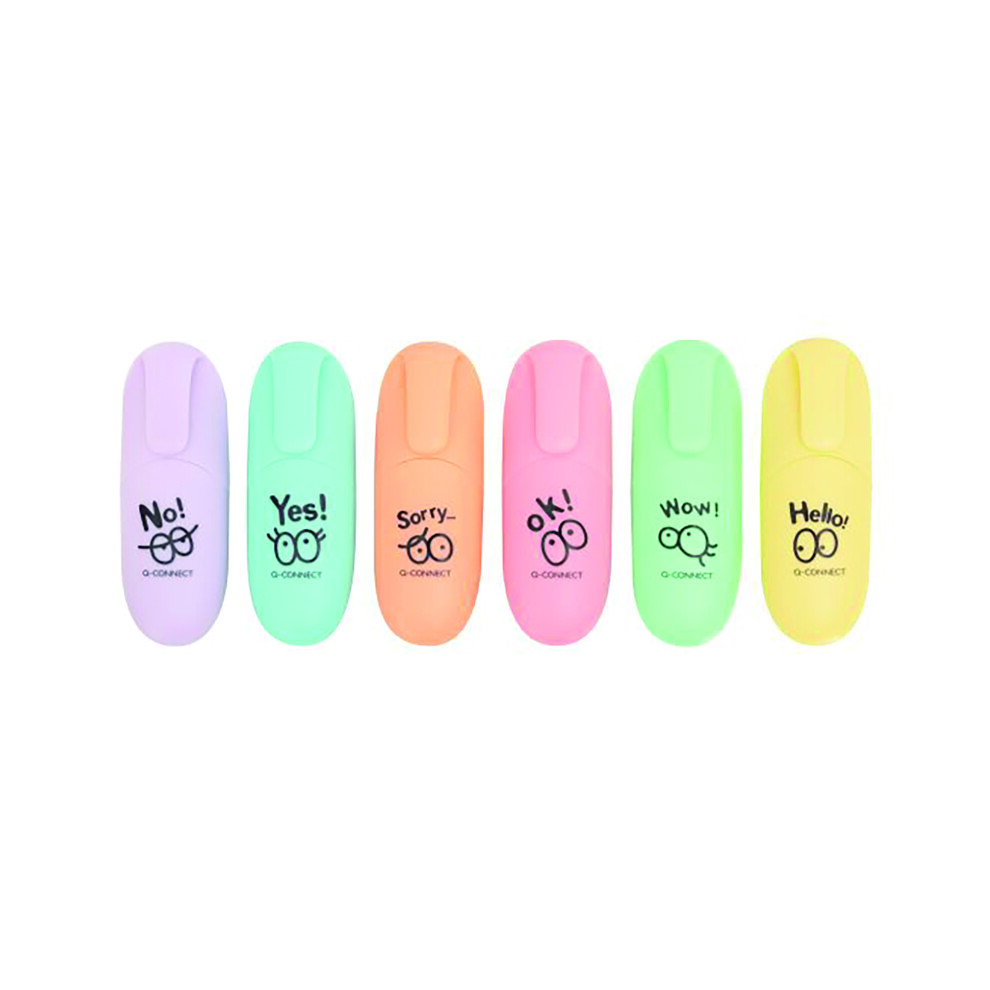 Q-Connect Fun Mini Highlighter Pens Pastel Assorted (Pack of 6)
