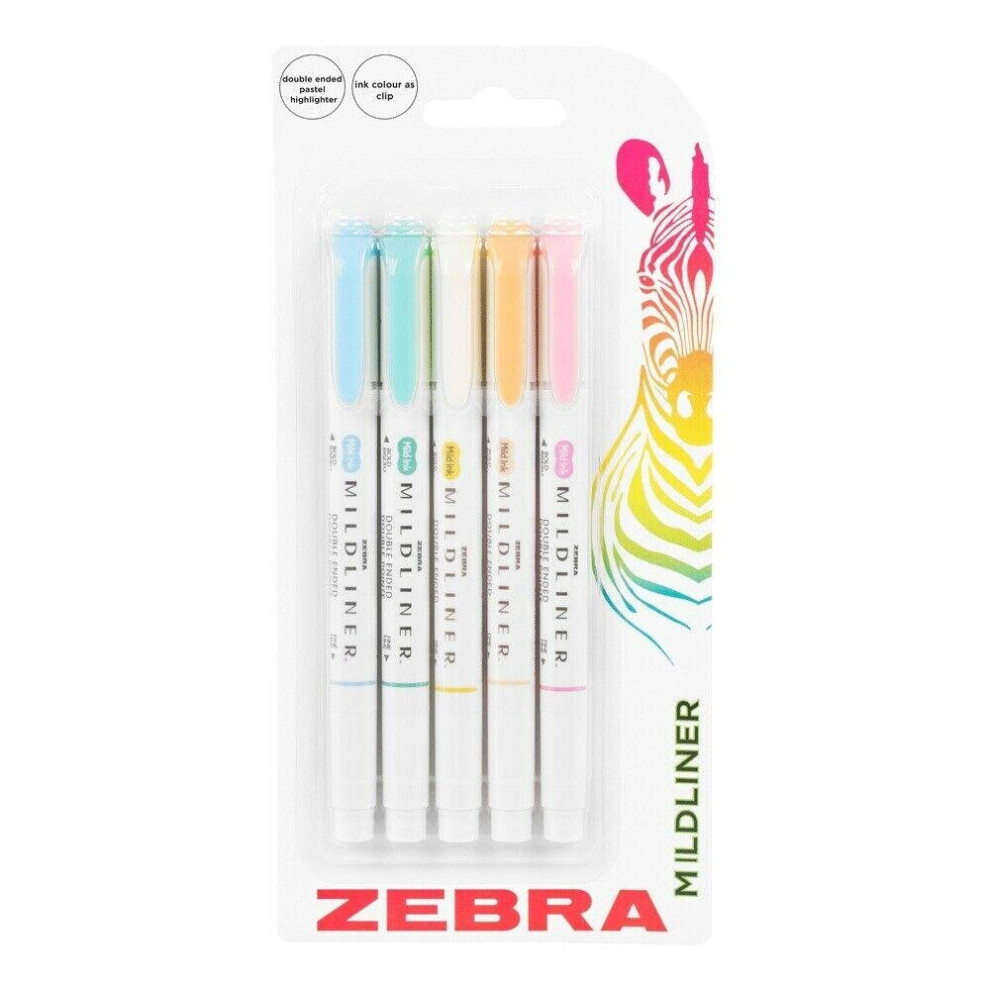 ZEBRA Mildliner Highlighter Pens - Pack of 5 Soft Pastel