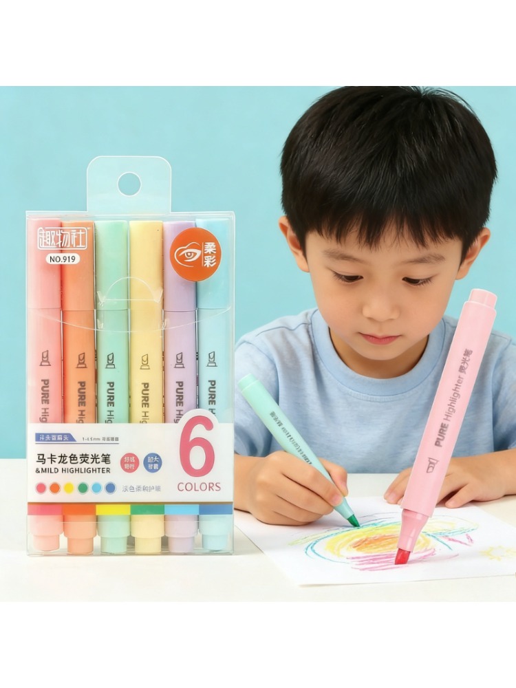 6PCS Pastel Highlighter Pens - Macaron Color Marker Set, Cute Fluorescent Drawing Pens for School, Office & Study Stationery
