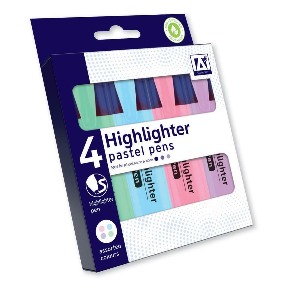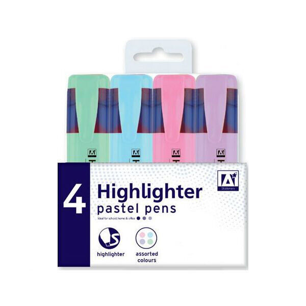 PASTEL HIGHLIGHTER PENS ASSORTED COLOURS 4 PACK