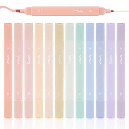YISAN Pastel Highlighter Pens,Double Tip12 Colors Bible Highlighter Markers no