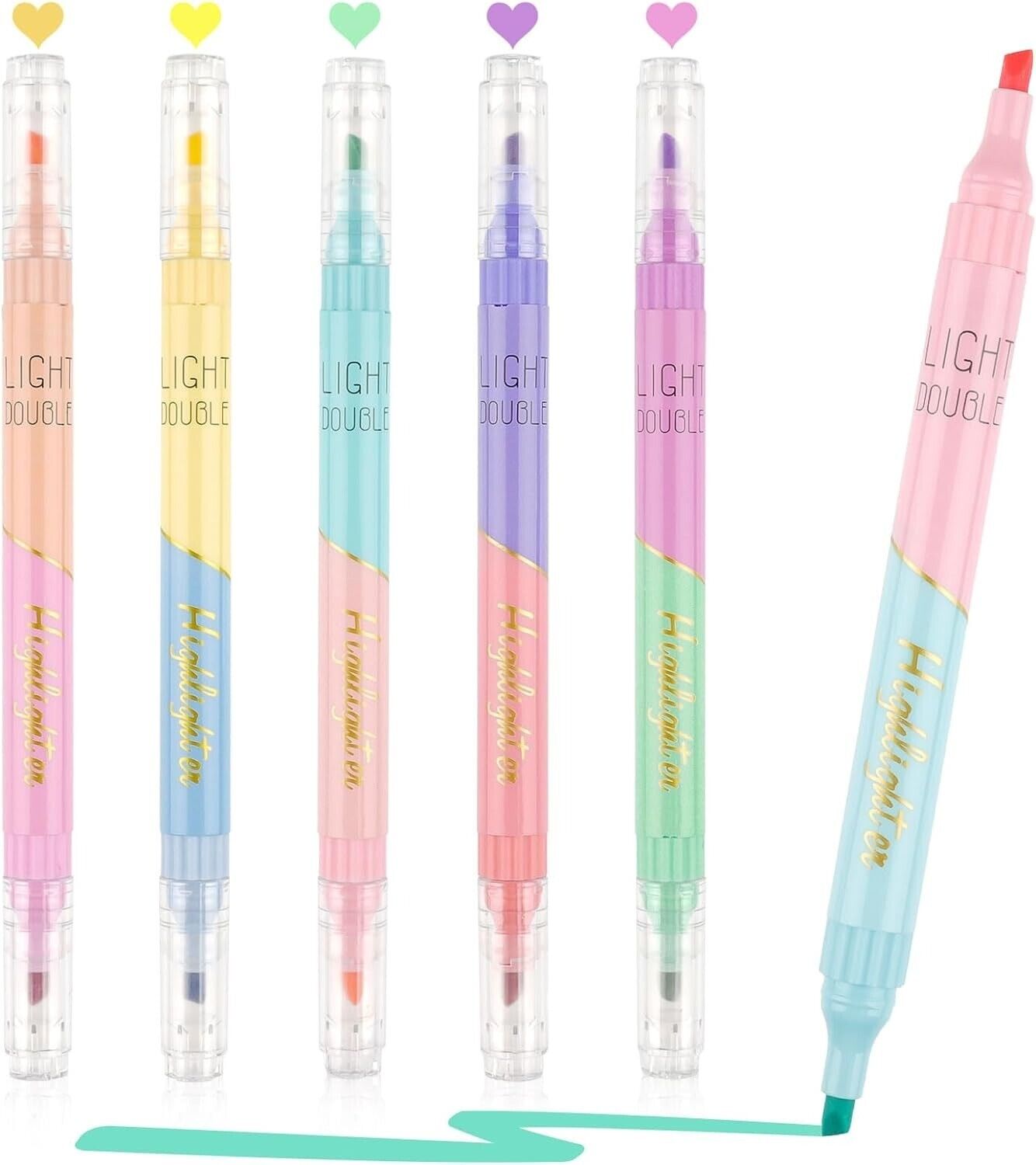 6 Pack Highlighters Pens, Double Ended Pastel Highlighter Assorted Colors Marker
