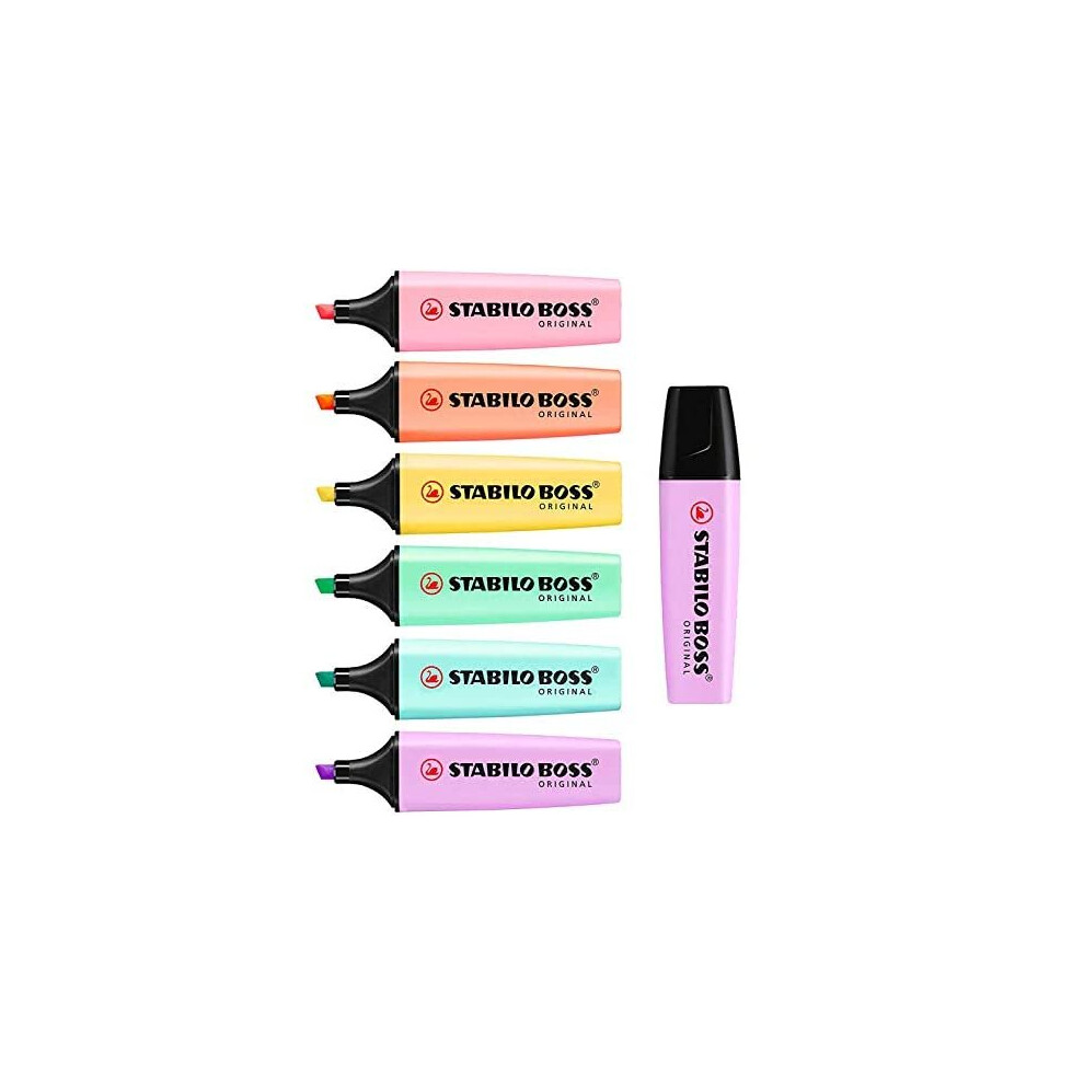 STABILO BOSS Original Pastel Highlighter Marker Pens - Full Set of 6 + Lilac Haze