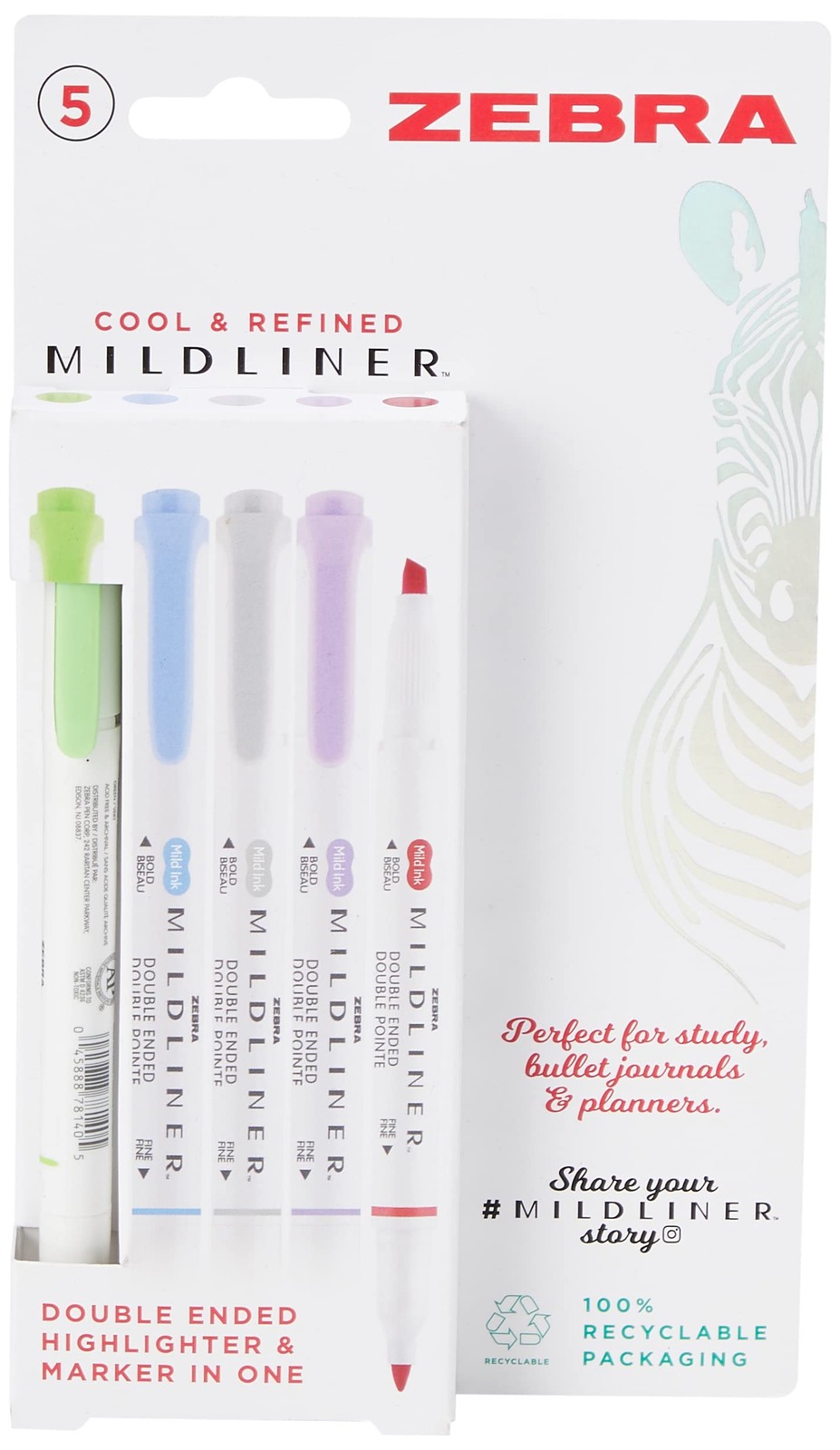 Zebra Pen MILDLINER Dual Tip Highlighter Pens, Pastel Highlighters For Adults, B