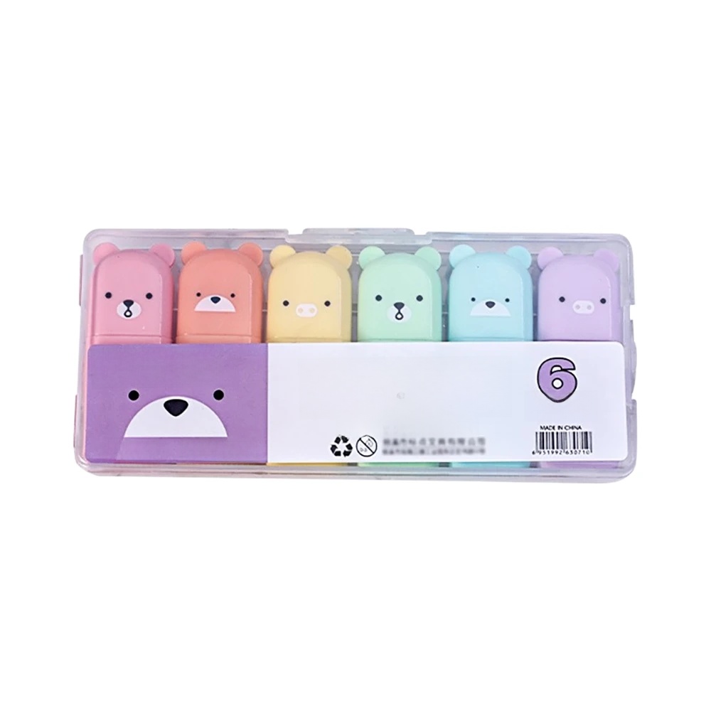 4/5/6 Pcs Kawaii Bear Highlighter Pens Cute Stationery Markers Oblique Tip Candy Color Fluorescent Pastel Pen School Supplies