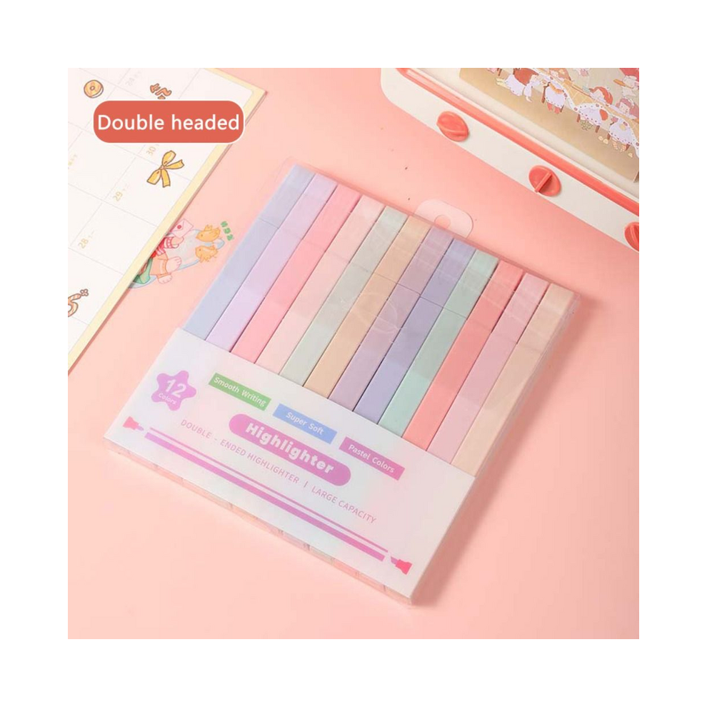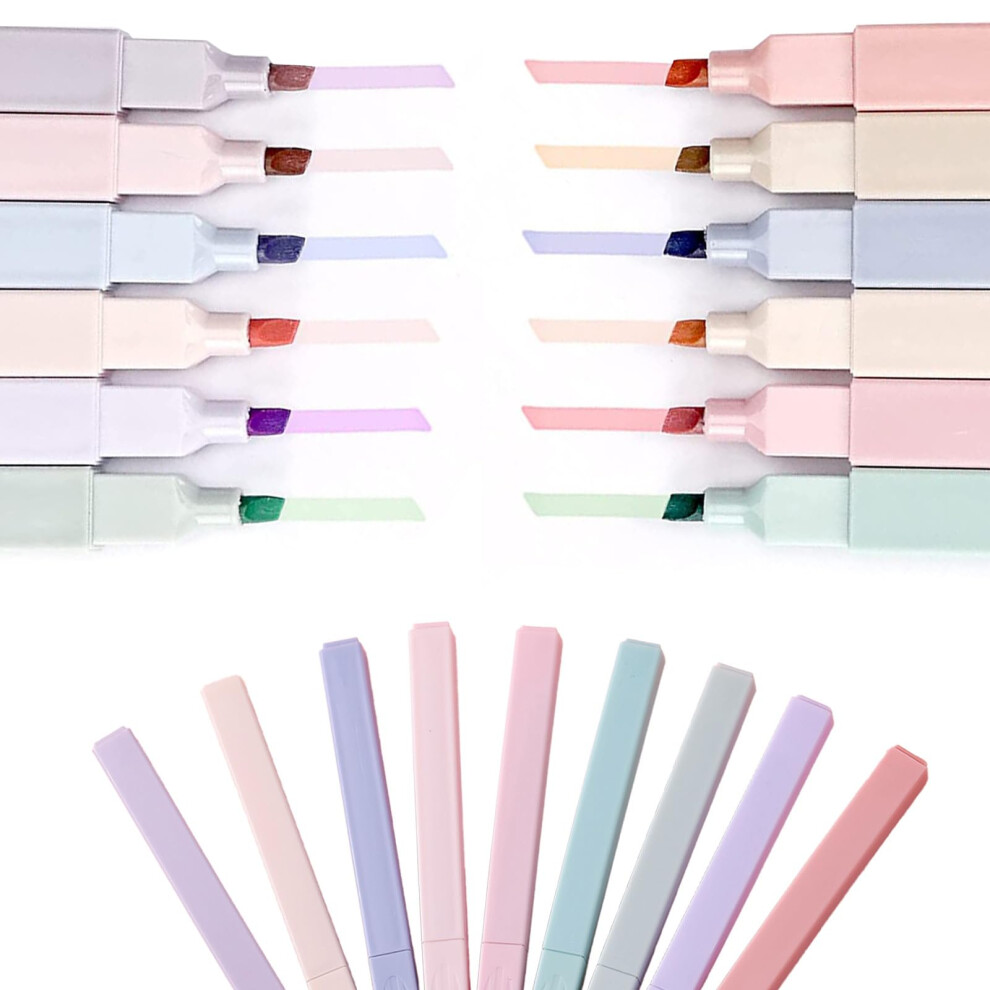 Pack of 12 Pastel Highlighter Pens, Aesthetic Marker Set for School, Office, Diary, and Notebook Writing