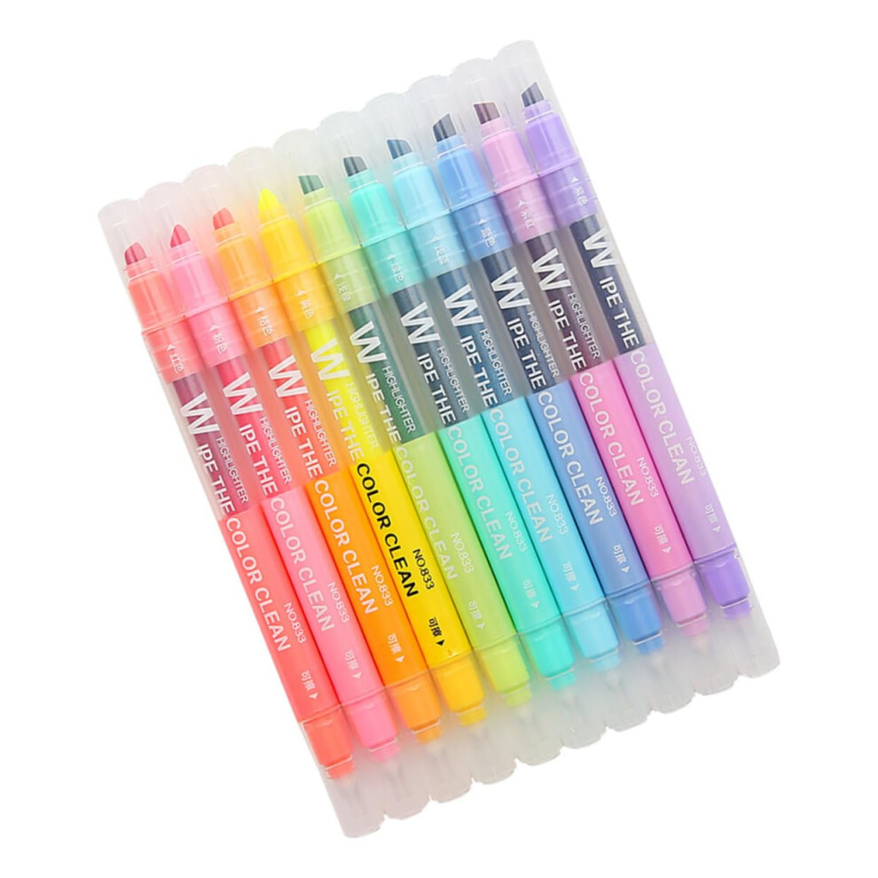 10pcs Double-ended Highlighter Pens for Whiteboard Erasable Liquid Markers with Wide and Thin Tips in Pastel Colors for Students and Artists