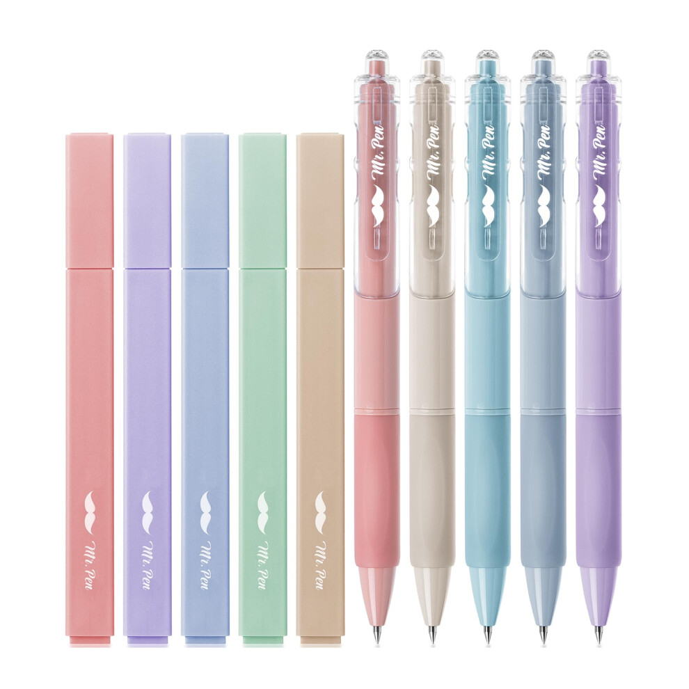Mr. Pen- Aesthetic Highlighters and Gel Pens 10 Pack Pastel Colors Bible Highlighters No Bleed Black Ink Gel Pens Highlighter Pens No Bleed Highl