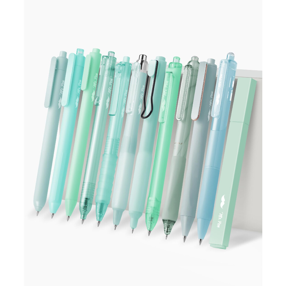 Mr. Pen- Gel Pen Set 12 Pack Pastel Green Barrels 1 x Aesthetic Highlighter 0.5mm Green Pens Black Ink