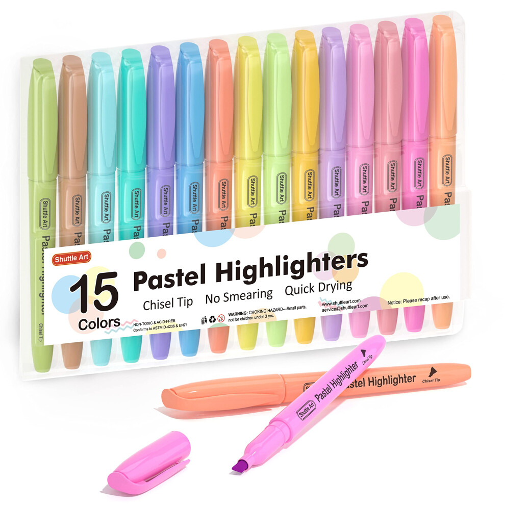 Shuttle Art Highlighters 15 Colors Pastel Highlighter Pens Assorted C