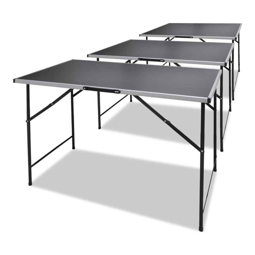 vidaXL Pasting Tables Set, 3 Pieces, Adjustable Height, Foldable Design, Robust MDF Tabletop, Aluminium and Iron Leg Structure - Black