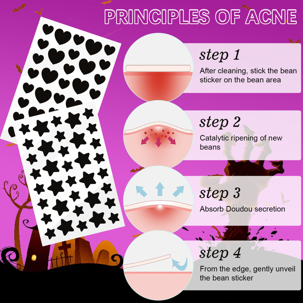 Gothic Style Black Star Acne Patch Set Waterproof Long-lasting Concealer Patch Make Pimples Acne Marks Invisible Face Care Patch
