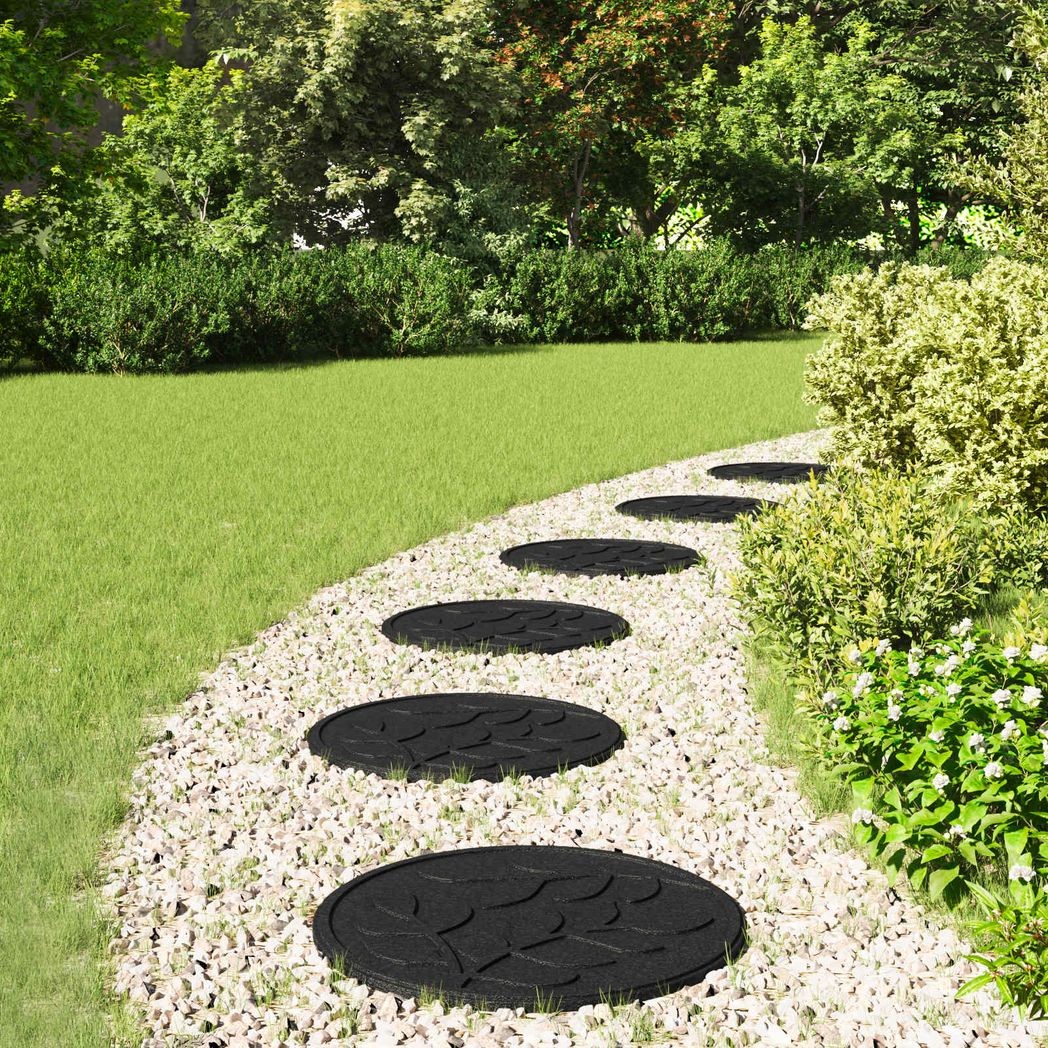 Stepping Stone Set 6pc Black Rubber Ø44cm x2cm Slip-Resistant Garden Path Decor
