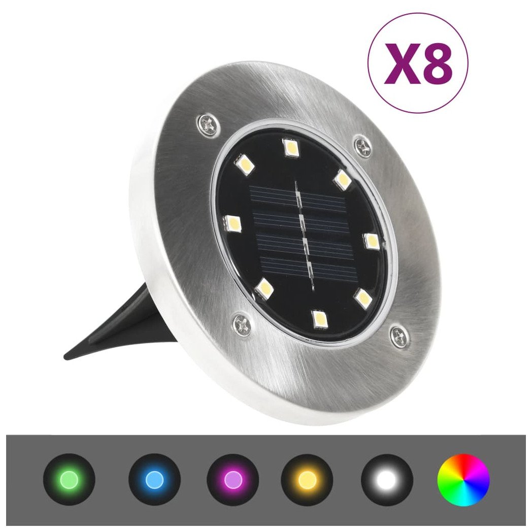 Solar Ground Lights RGB 8 Pack PP+Stainless Steel 12x13cm Waterproof Garden Path