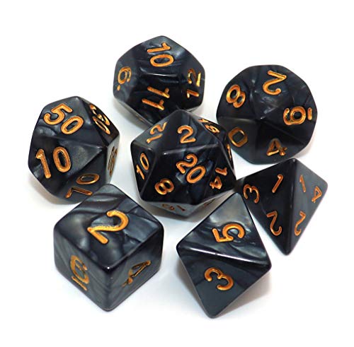 CREEBUY Polyhedral DND Dice Set Pearl Black for Dungeon and Dragons D&D Pathfinder RPG MTG Dice D20 D12 D10 D8 D6 D4