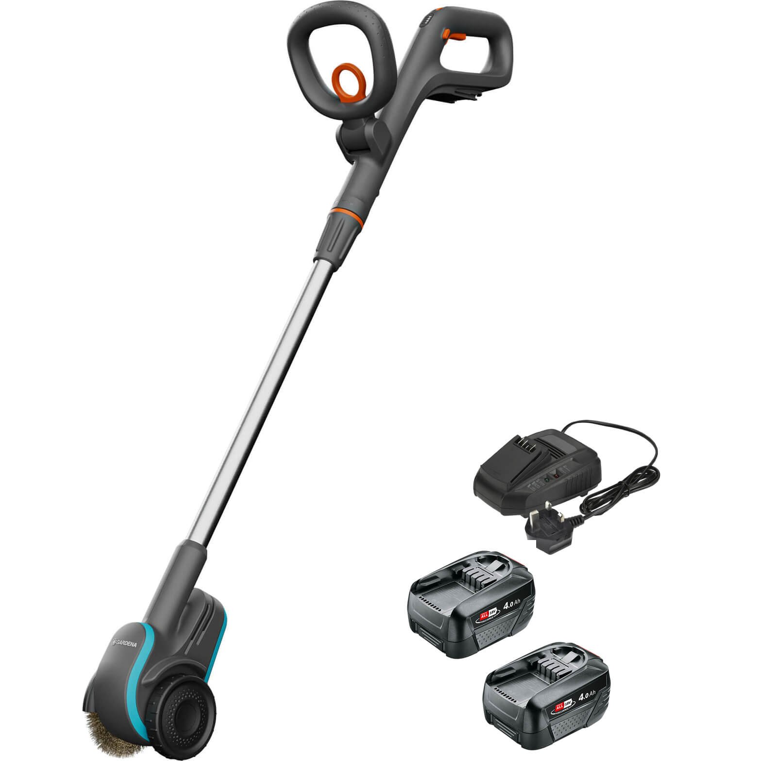 Gardena EASYWEED 1800 P4A 18v Cordless Patio Weeding Brush 2 x 4ah Li-ion Battery Charger