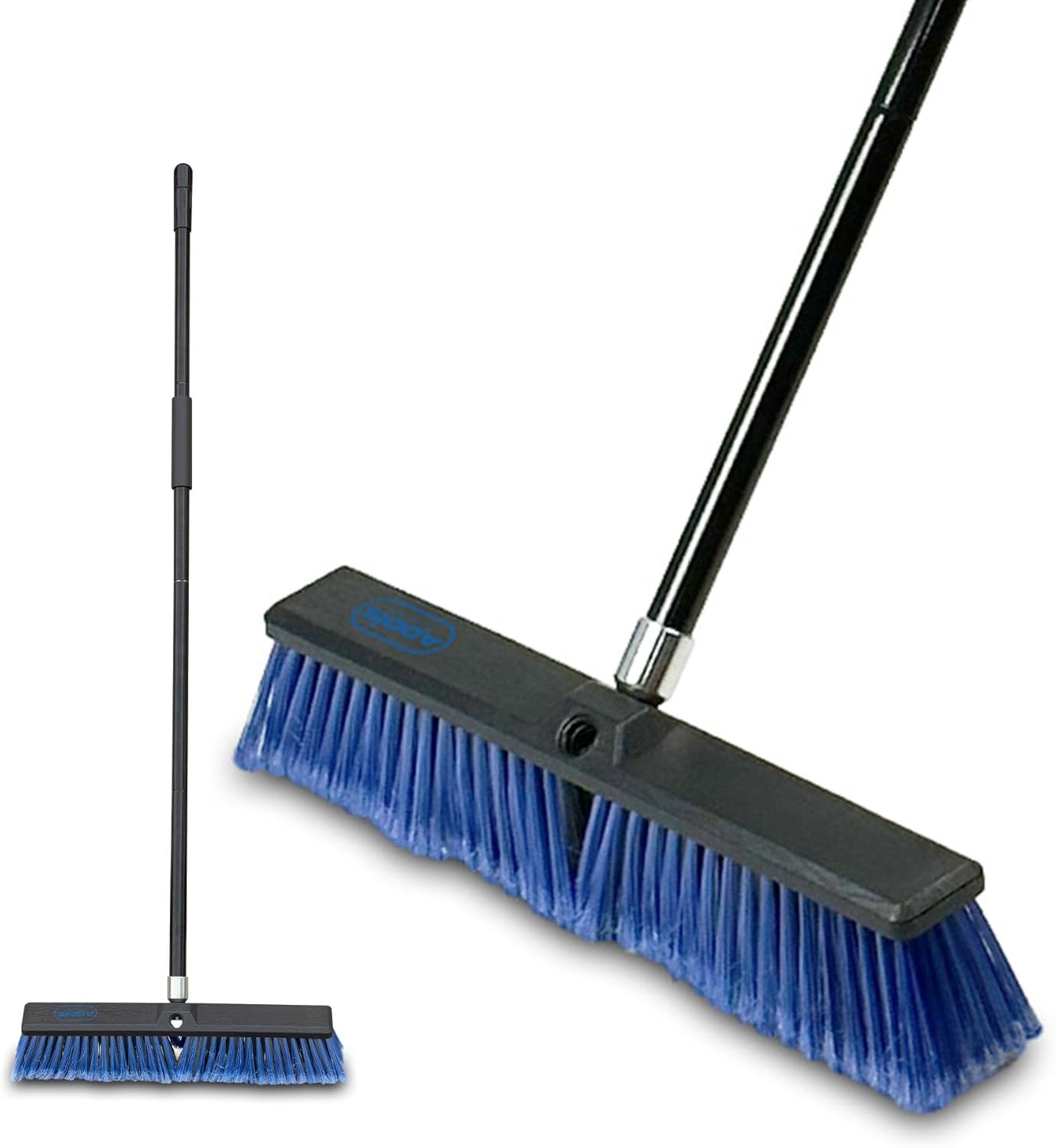 Addis Outdoor Broom & Patio Brush – Heavy Duty 45cm (17.7") Angled Head with Stiff Bristles Deck Driveway Garden & Yard Sweeping Brush Large Push Broom for Concrete Tile Wooden Floors, Blue Black