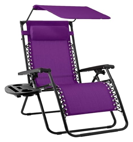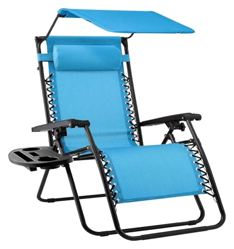 Folding Recliner Chair with Adjustable Canopy Shade and Headrest, Zero Gravity Patio Lounge Chair for Outdoor Lawn