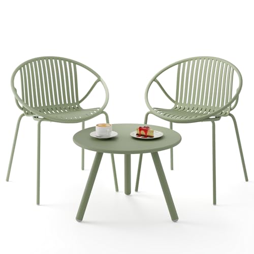 COSTWAY 3 Pieces Bistro Set, All Weather PP Garden Conversation Furniture Set with Round Coffee Table, Heavy-duty Metal Frame Patio Chair and Table Sets for Deck, Balcony, Poolside (Green)