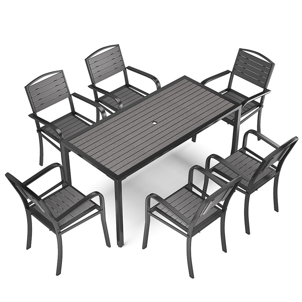 (150*70cm Grey Table Only) Garden Patio Dining Table Chair Outdoor Bistro Tables Parasol Hole