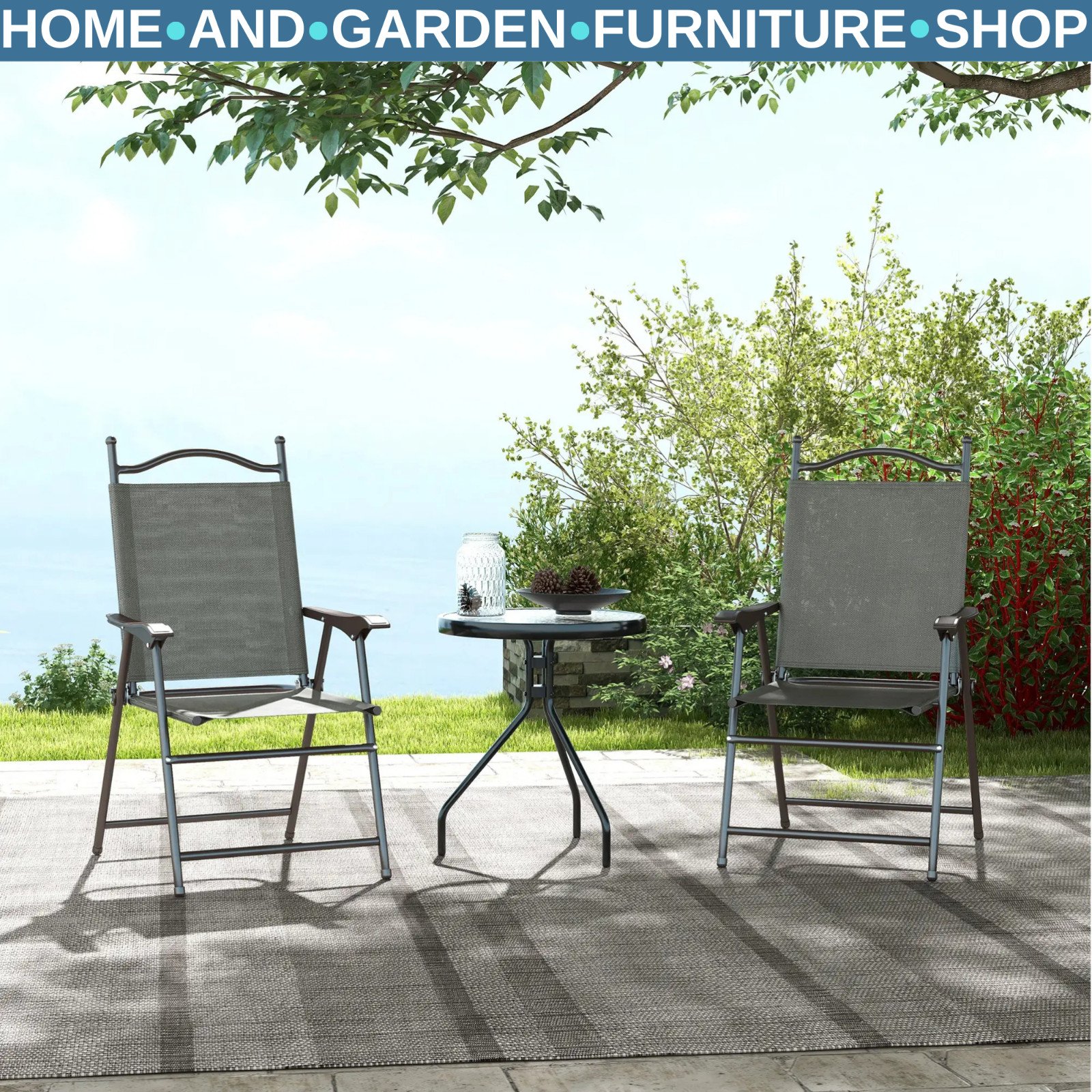 Grey Folding Chairs Set of 2 Outdoor Camping Seat Portable Patio Garden Chair
