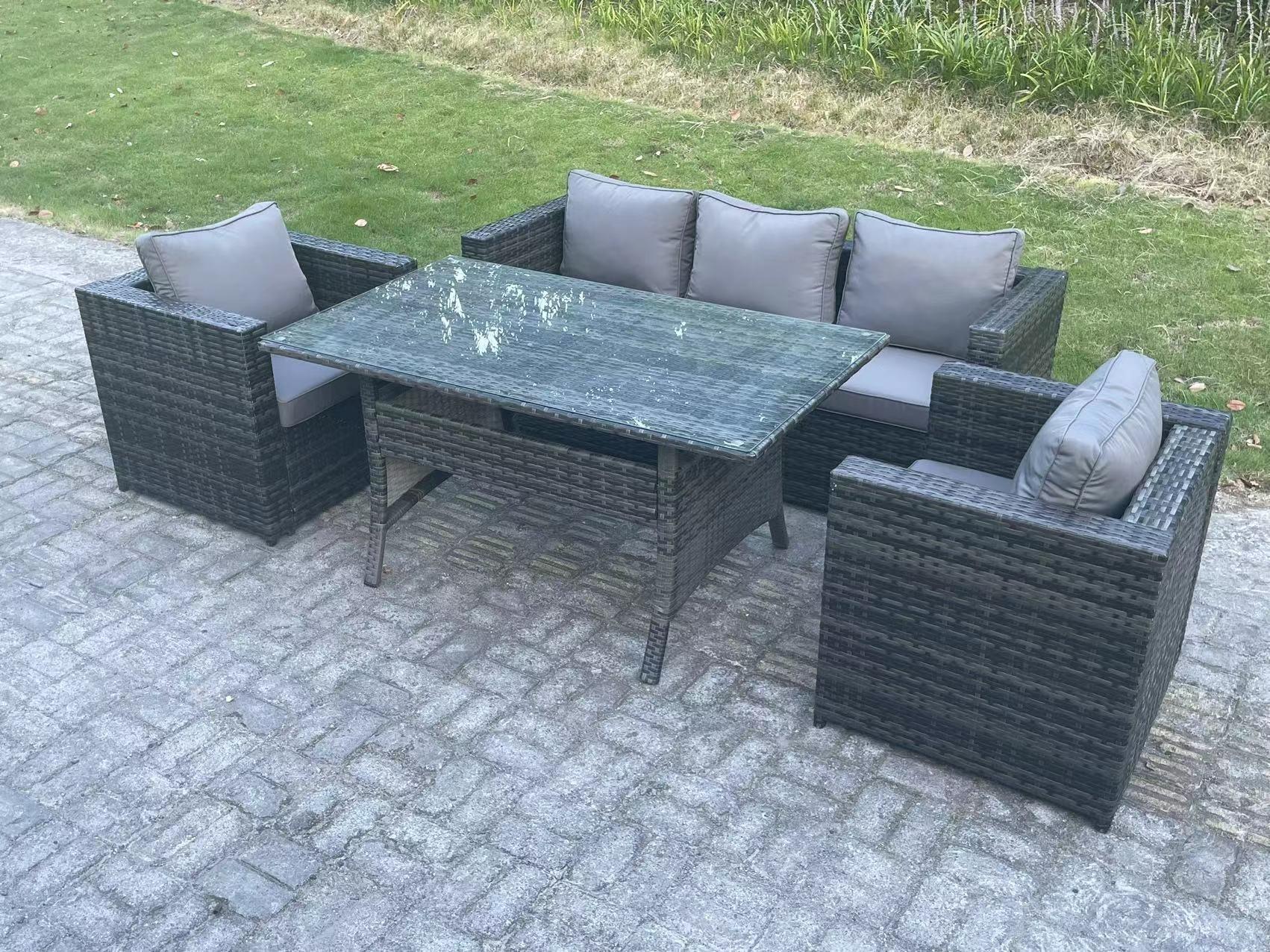 Outdoor Lounge Sofa Garden Furniture Set Rattan Rectangular Table Patio Chair 7 Seater