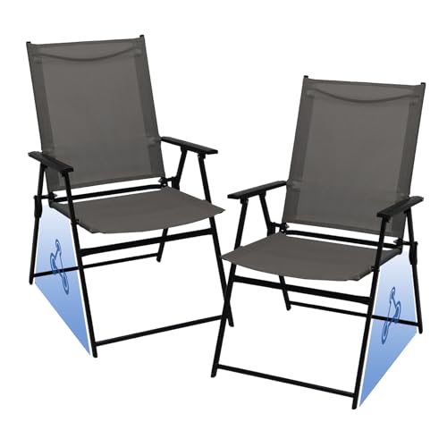 JMGJOY Folding Garden Chairs Set of 2 High Back Outdoor Patio Dining Chairs Portable Foldable Camping Chair Metal Steel Frame Max.113kg for Picnic, Camping, Fishing, Lawn, Yard, Beach, Gray