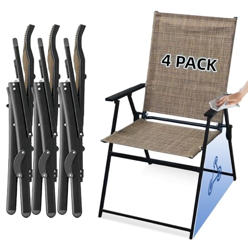 JMGJOY Folding Garden Chairs Set of 4 High Back Outdoor Patio Dining Chairs Portable Foldable Camping Chair Metal Steel Frame Max.113kg for Picnic, Camping, Fishing, Lawn, Yard, Beach, Brown