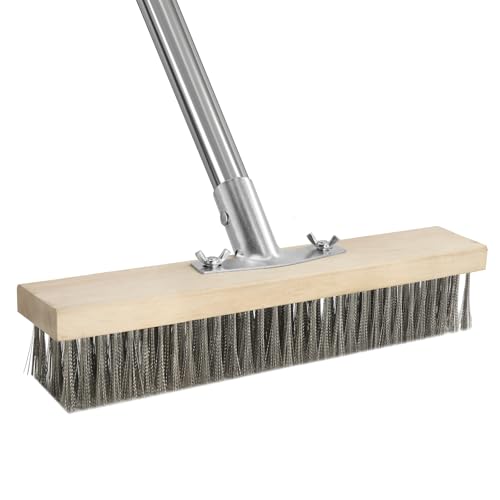 JETHMA Stainless Steel Wire Floor Brush Wire Broom with 4 Section Detachable Pole Heavy Duty Wire Deck Brush Multipurpose Wire Cleaning Brushes for Rough Surface Concrete Floor Patio Garden Garage