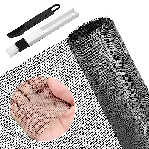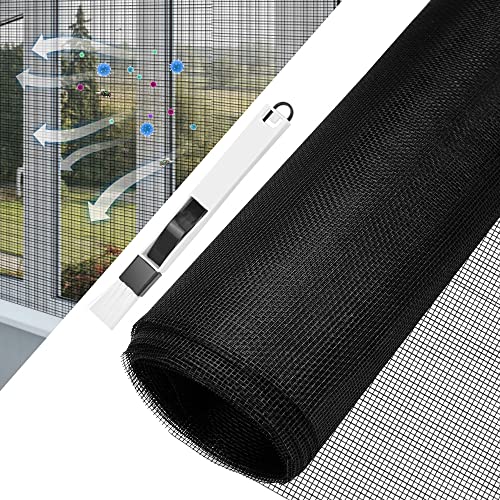 BUZIFU Window Screen Mesh 1.2 x 2.5 m Fiberglass Screen Fly Screen Wire Mesh Insect Mesh Replacement Cuttable Mosquito Net Pet Screen with Cleaning Brush for Windows Doors Patio, Cat-Proof, Black